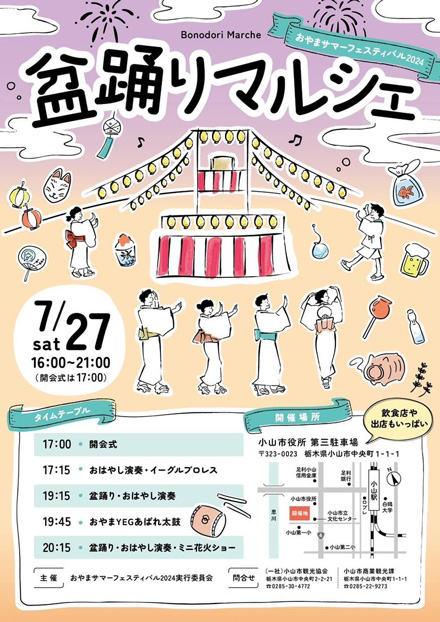 花火大会の前日16:00~21:00に「盆踊りマルシェ」が開催されます。